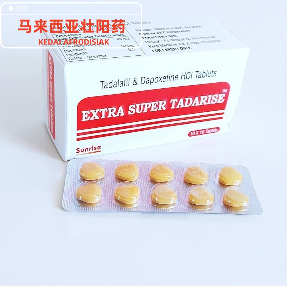 Extra Super Tadarise(超级希爱力)是一种双效口服片,主要用于同时治疗男性勃起功能障碍(ED) 和早泄(PE)。该药物由印度Sunrise制药公司生产,其核心成分为他达拉非(Tadalafil,40mg) 和达泊西汀(Dapoxetine,60mg)。他达拉非作为长效PDE5抑制剂,负责改善勃起硬度;达泊西汀则作为选择性5-羟色胺再摄取抑制剂(SSRI),用于延长射精时间。两种成分协同作用,实现“助勃+延时”双效合一。